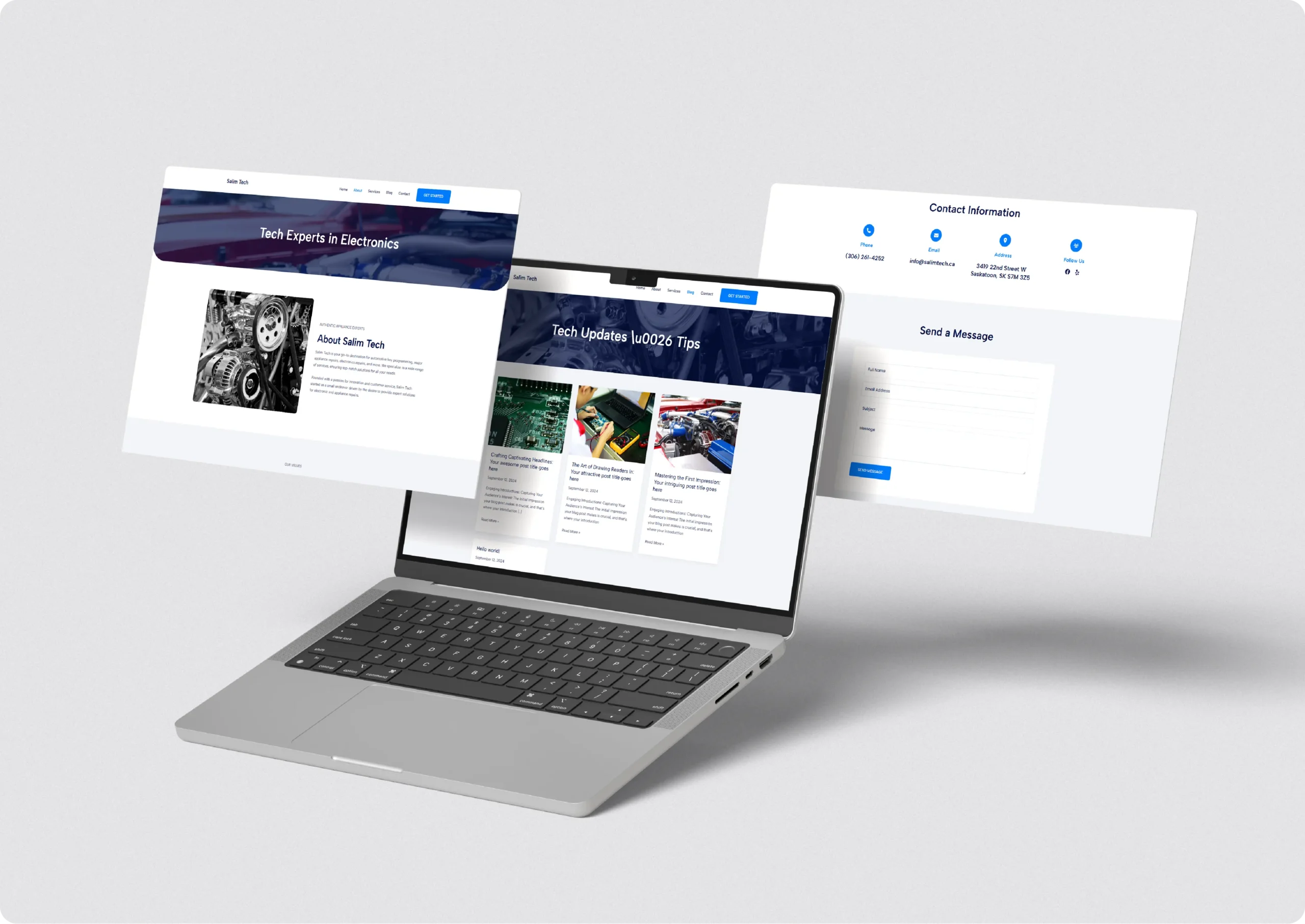 Custom Website Design: Crafted a visually appealing website that reflects Salim Tech’s brand identity and highlights its range of services.